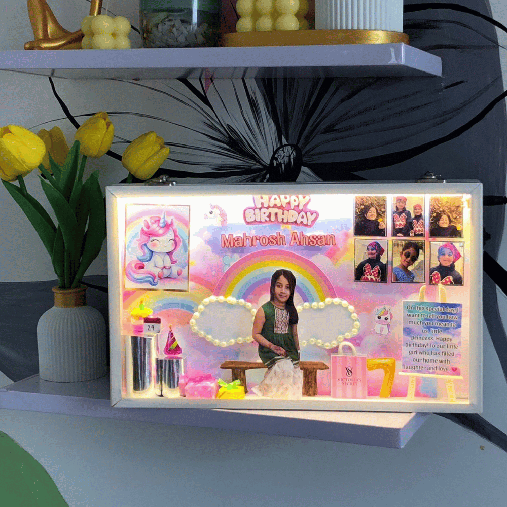 Inside this delightful box, you’ll find a customized photo globe that lights up beautifully, showcasing your favorite picture inside. Paired with a cute starfish candle and a luxurious artificial flower, this set combines warmth, love, and elegance — all wrapped in a beautiful gift box, ready to gift straight away.
