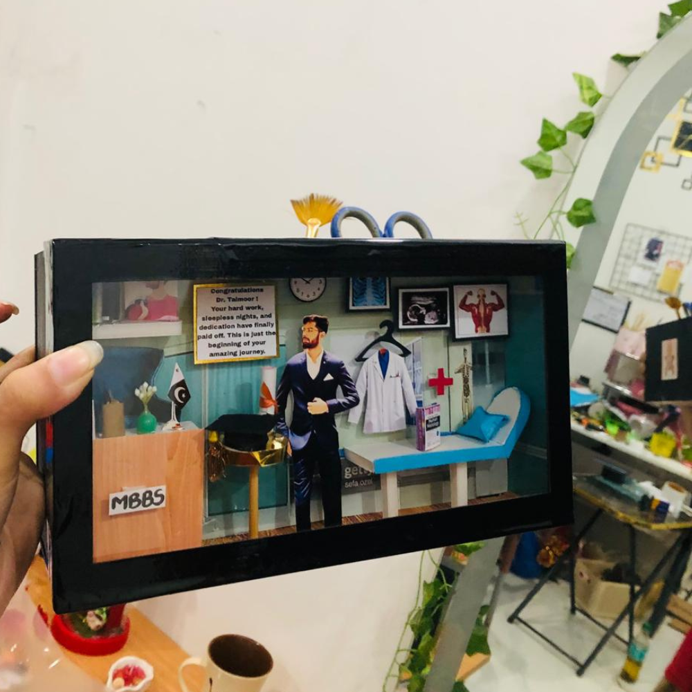 This MDF-based pen holder is a one-of-a-kind handcrafted piece designed to be both functional and meaningful. Featuring a customizable theme—such as a miniature office setup or personalized scene—it makes an ideal gift for professionals, students, or loved ones.